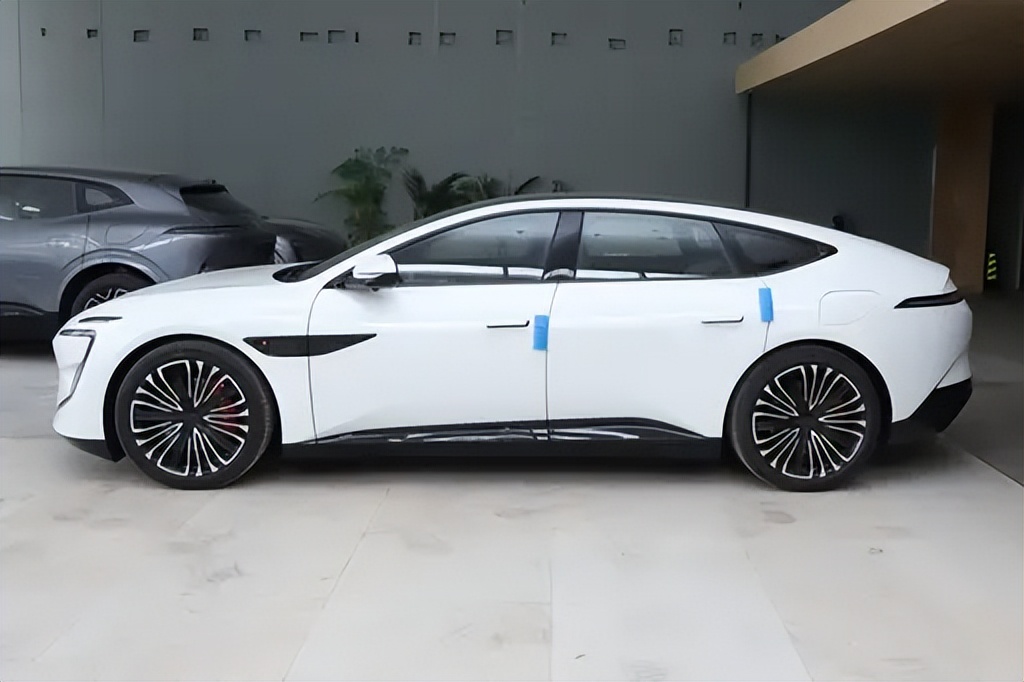 从侧面看,阿维塔12的线条几乎找不到突兀的转折点。车顶从A柱开始缓缓下压,与尾部掀背处自然衔接,形成了典型的GT轿跑轮廓。隐藏式门把手、电子外后视镜与20英寸低风阻轮毂共同塑造出简洁而高效的视觉效果。车侧比例十分协调——长车头、短前悬、低重心,这种经典GT比例在电动车上并不常见。