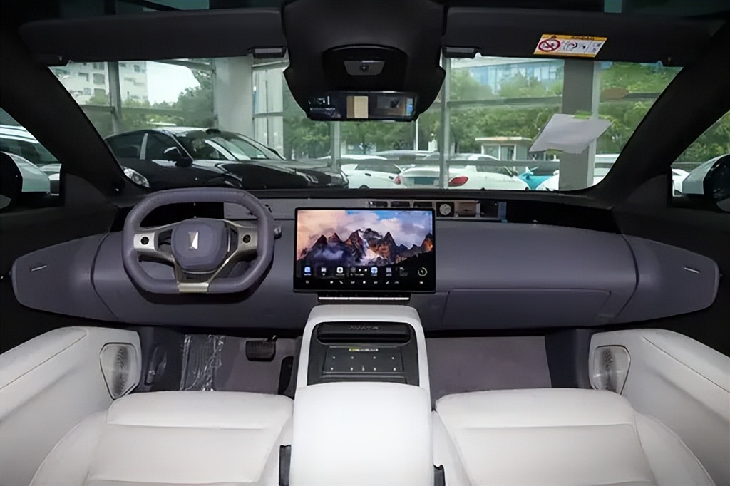 如果说外观代表了阿维塔12的理性与科技,那么进入车内后,你会立刻感受到一种“温和的未来感”。整个座舱设计不追求炫技,而是以简洁、舒展与高质感为主调。中控台最引人注目的是那块横贯整个前排的35.4英寸4K环幕屏。它将仪表、导航与多媒体信息整合在同一视域内,信息分区清晰,驾驶者无需频繁转移视线。屏幕显示效果细腻,亮度调节范围广,阳光直射下仍能保持良好可读性。