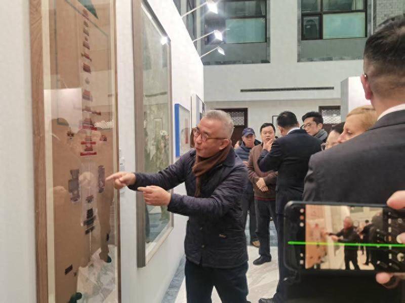展览现场,人民大学艺术学院教授黄华三向西班牙的几位参会嘉宾介绍了他创作的界画《京城之脊》。在作品构思和草图绘制过程中,他与创作团队刻意消除了绘画中通常无法回避的绘画透视关系,以散点透视构建出北京中轴线的完整画面。在绘画表现上,他们激活了传统绘画中最适于表现亭台楼阁的中国古典界画的技艺技法,不遗余力投入了大量的时间成本与人工成本,采用传统中国画形制、工具与材料金投策略,以繁复入微的传统界画技艺技法,结合新材料与新技法,以现代审美观照全局,以精准的造型、华丽的色彩,完美呈现了北京中轴线恢宏的视觉图景。