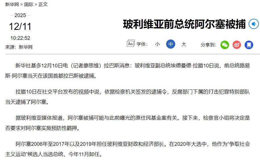 拉腊10日在社交平台发布的视频中说,依据检察机关签发的逮捕令,反腐部门下属的打击犯罪特别部队当天逮捕了阿尔塞。